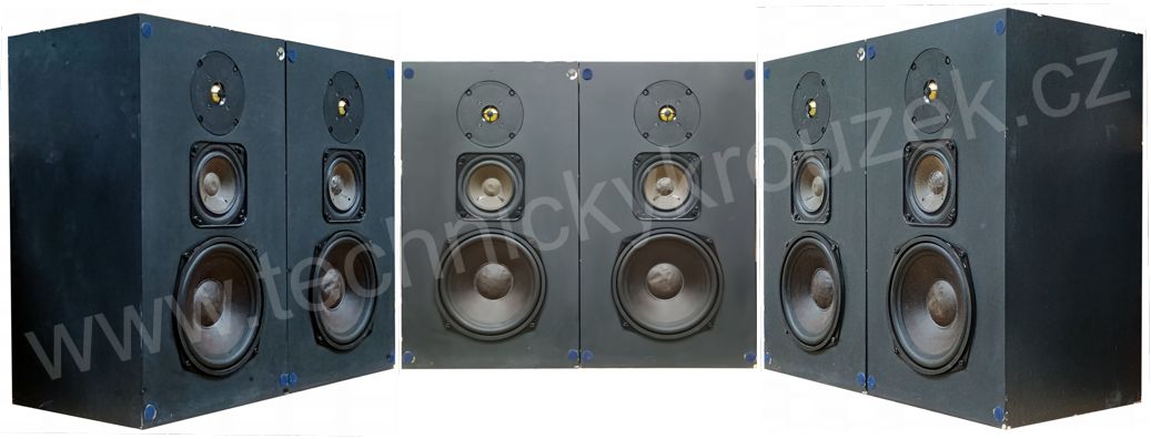 třípásmovými reproduktory 70/110 VA, podle Hrubiána, před povrchovou